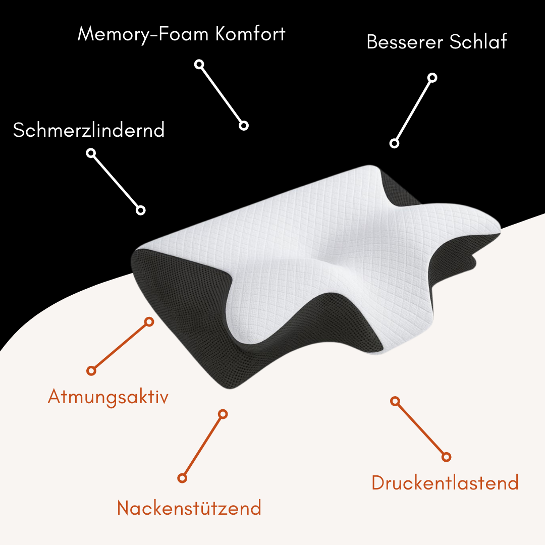 Der hochwertige Memory-Schaum passt sich punktgenau an deinen Körper an und entlastet Nacken und Schultern.